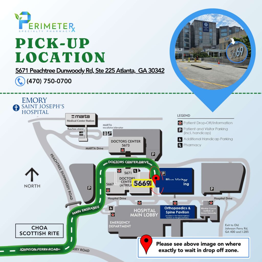 Perimeter Specialty Pharmacy is located on the Emory St. Joseph’s hospital campus in the main lobby of the professional buildings.